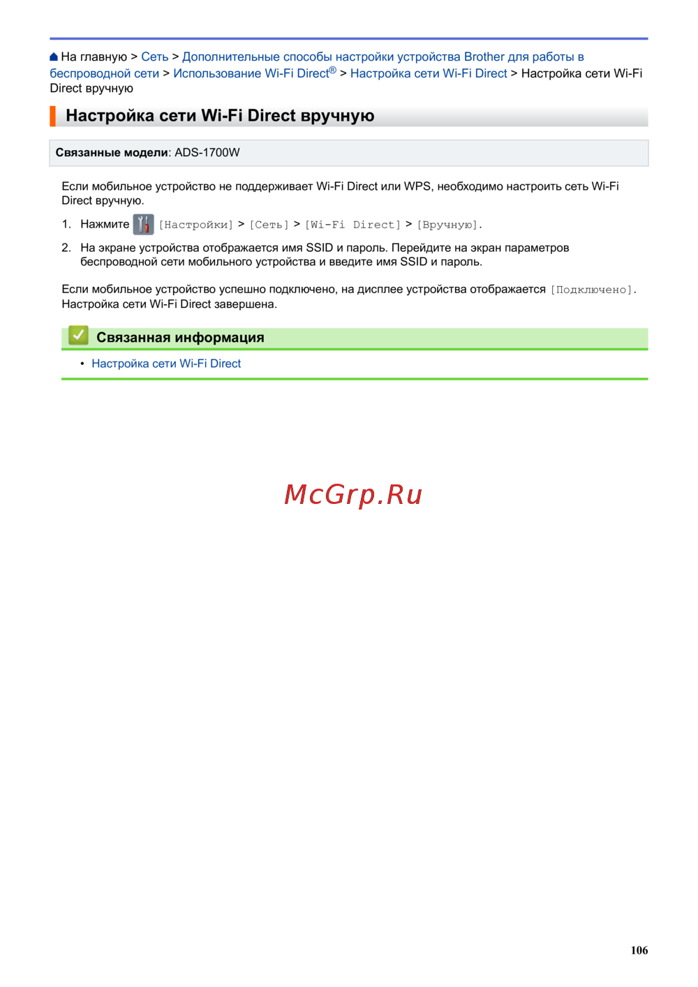 Brother ADS-1200 (ADS1200TC1) [110/223] Связанная информация