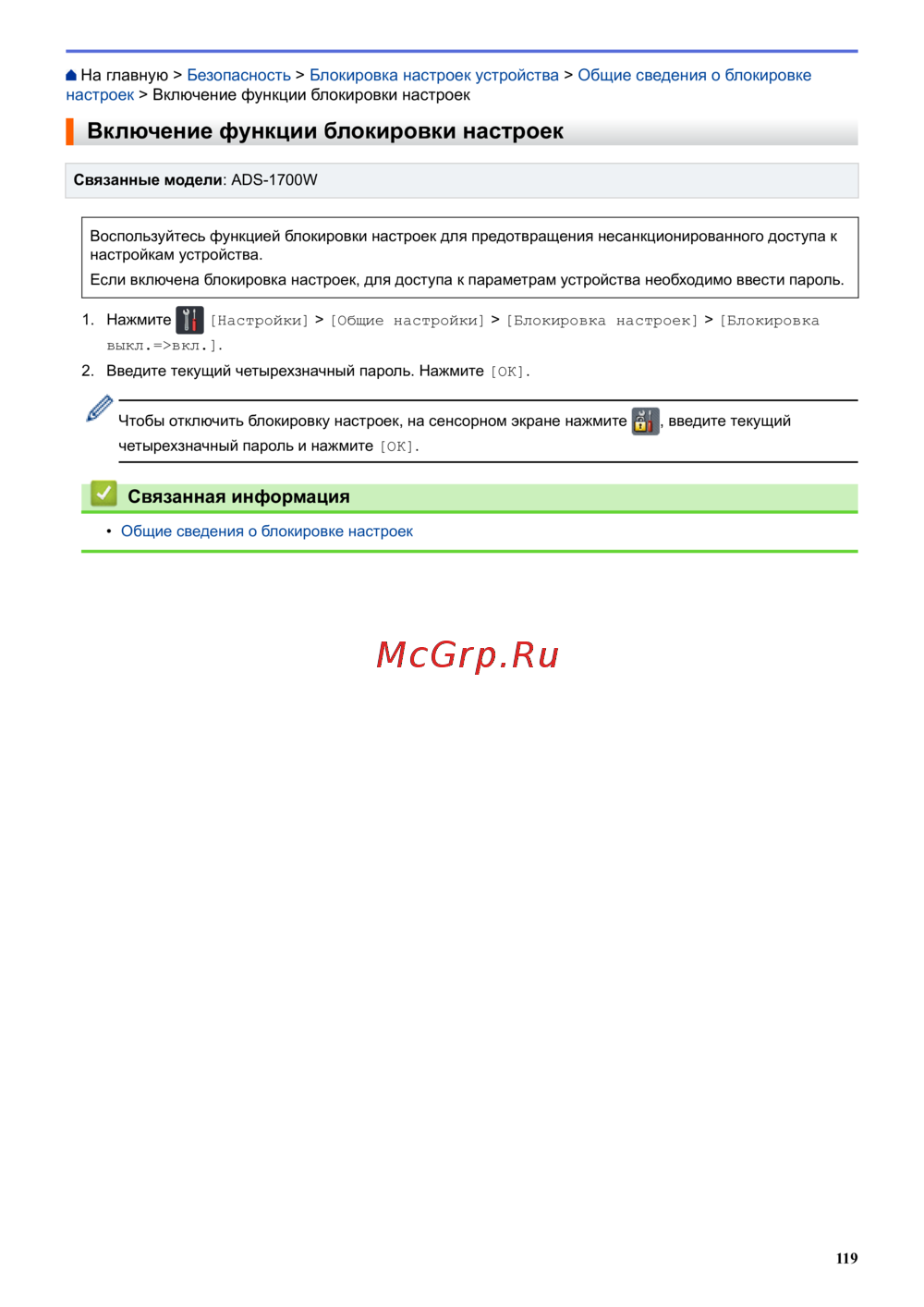 Brother ADS-1200 (ADS1200TC1) — как включить блокировку настроек устройства для безопасности [123/223]