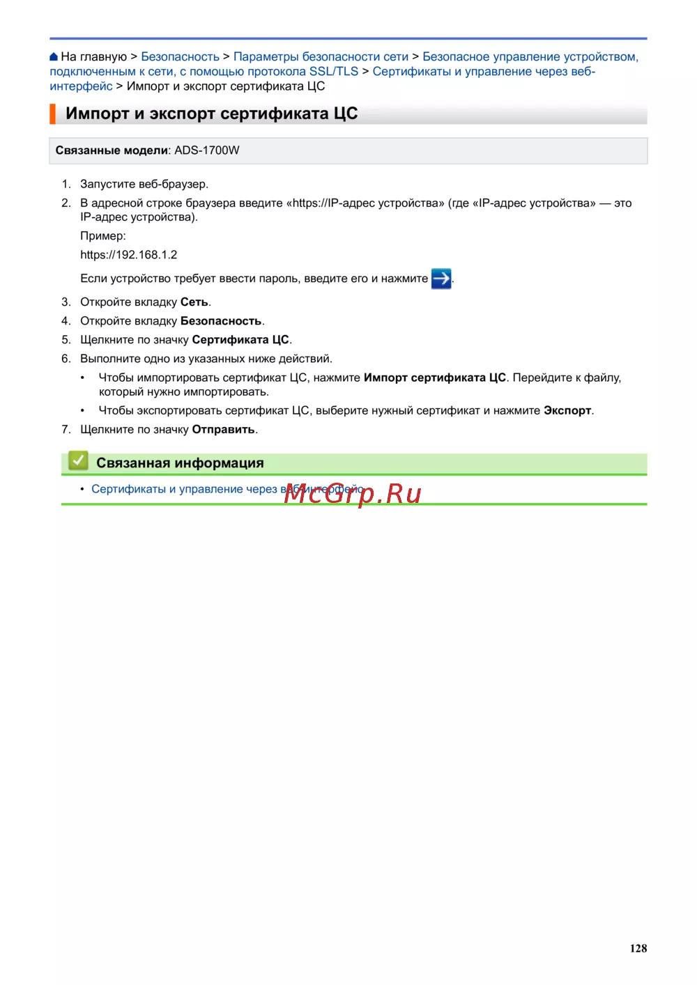 Brother ADS-1200 (ADS1200TC1) — импорт и экспорт сертификатов ЦС через веб-интерфейс устройства [132/223]