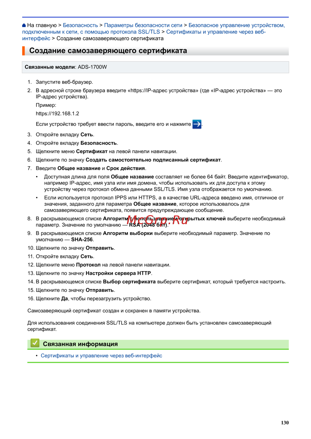 Brother ADS-1200 (ADS1200TC1) — создание самозаверяющего сертификата для безопасного управления устройством [134/223]
