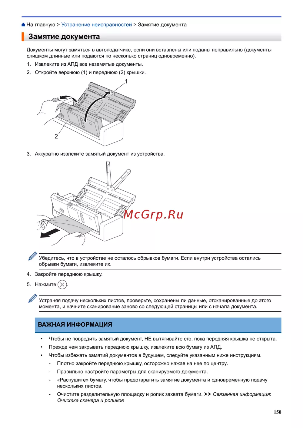 На главную > Устранение неисправностей > Замятие документа