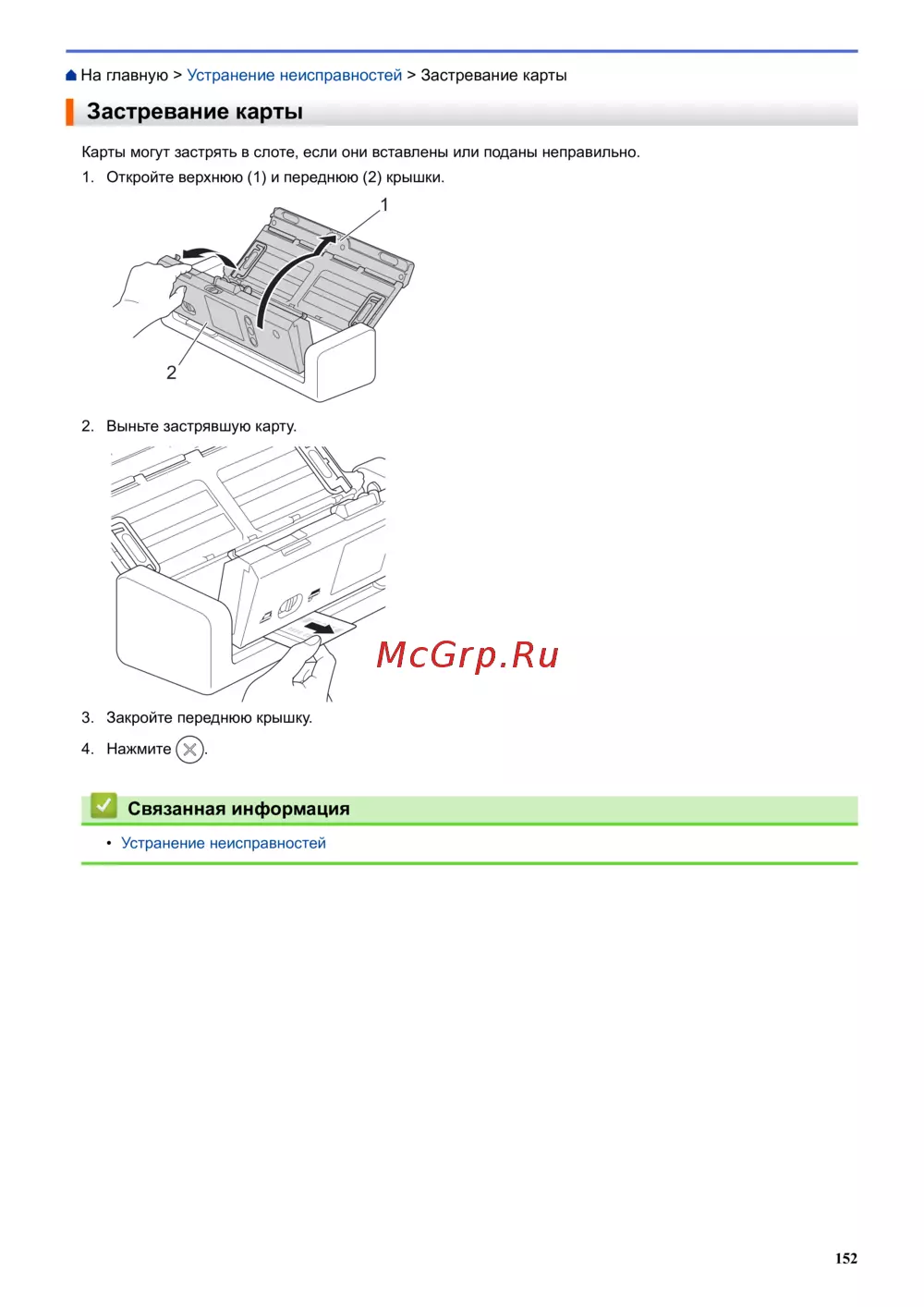- Некоторые типы карт с тиснением могут сканироваться неправильно p.21