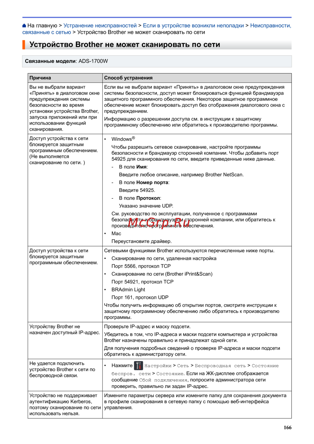 Brother ADS-1200 (ADS1200TC1) — устранение неисправностей сетевого сканирования устройства [170/223]
