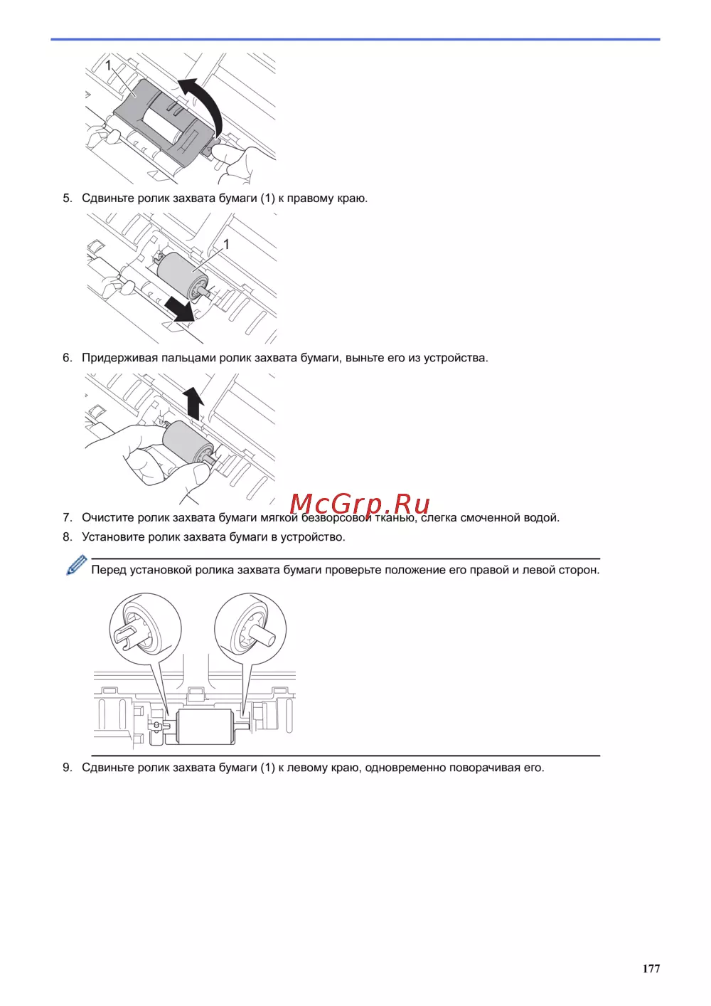 7. Очистите ролик захвата бумаги мягкой безворсовой тканью, слегка смоченной водой.