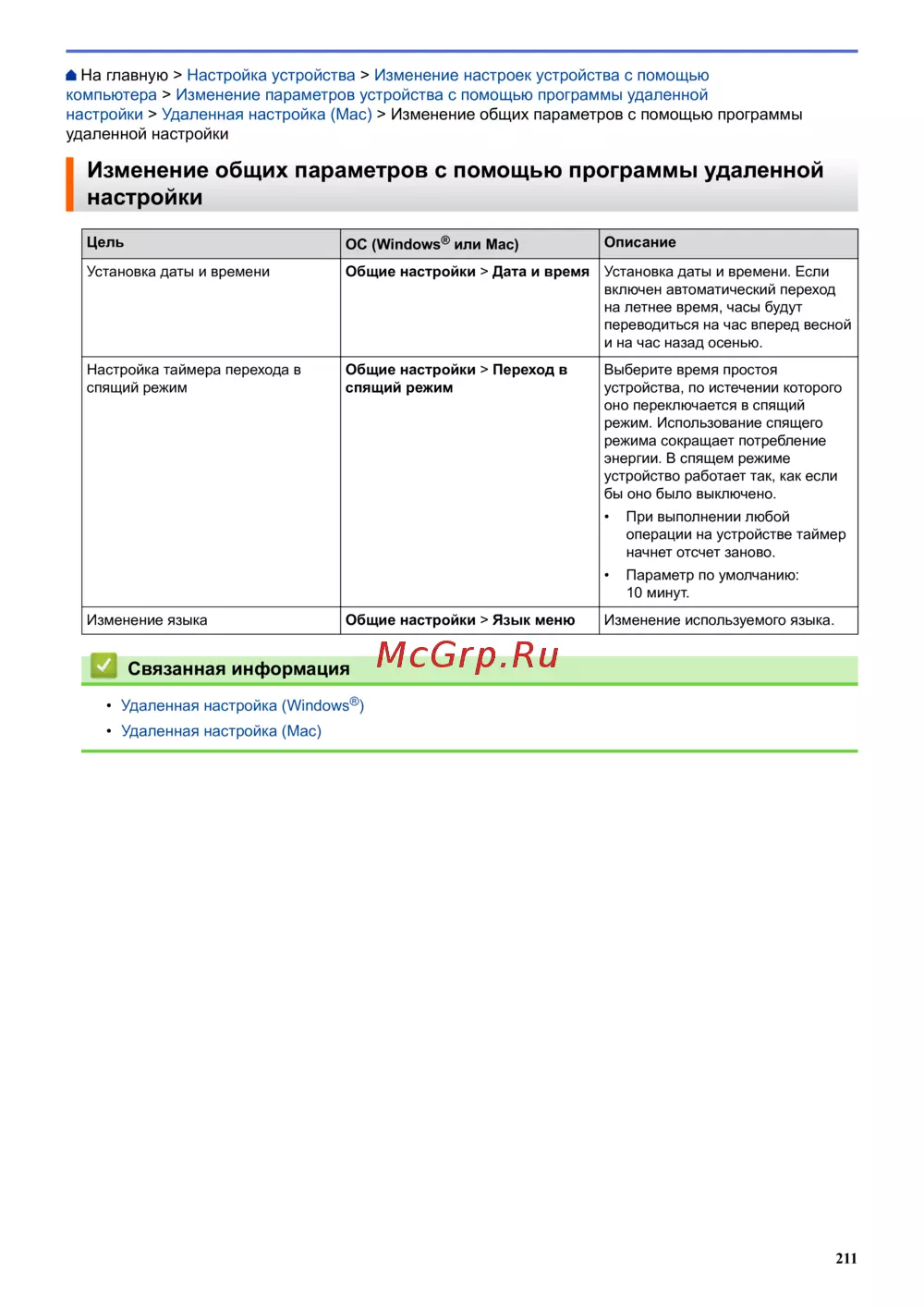 - Настройка устройства brother с помощью программы удаленной настройки mac p.213