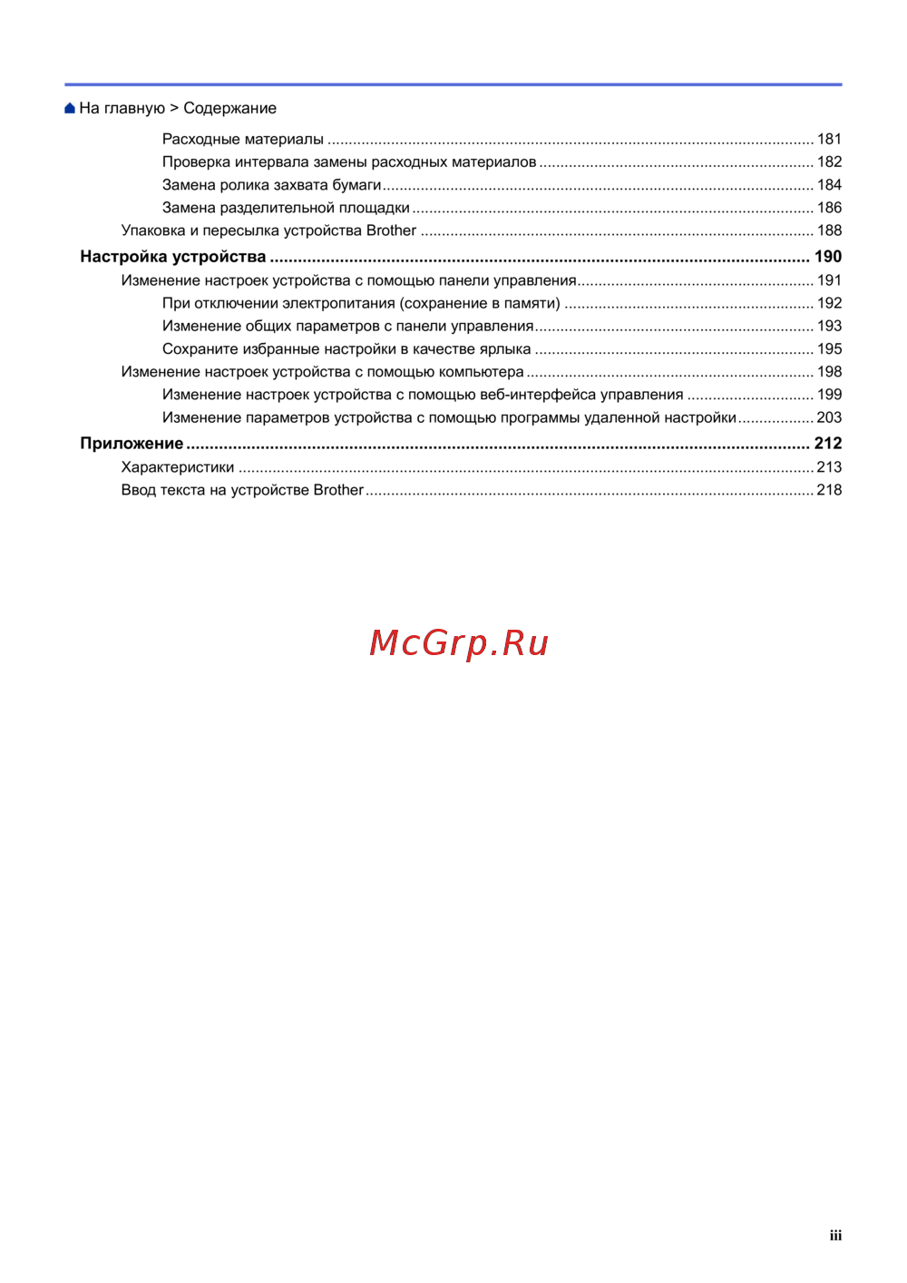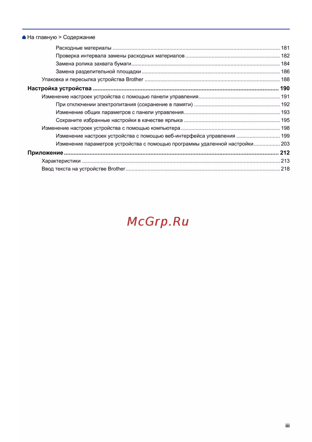 Упаковка и пересылка устройства Brother ............................................................................................. 188