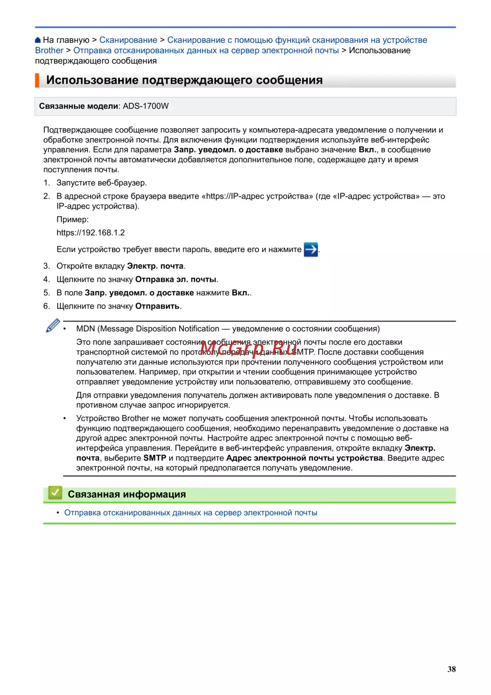 Узнайте, как настроить подтверждающее сообщение для отправки сканированных данных на электронную почту. Получите уведомления о доставке и обработке сообщений.