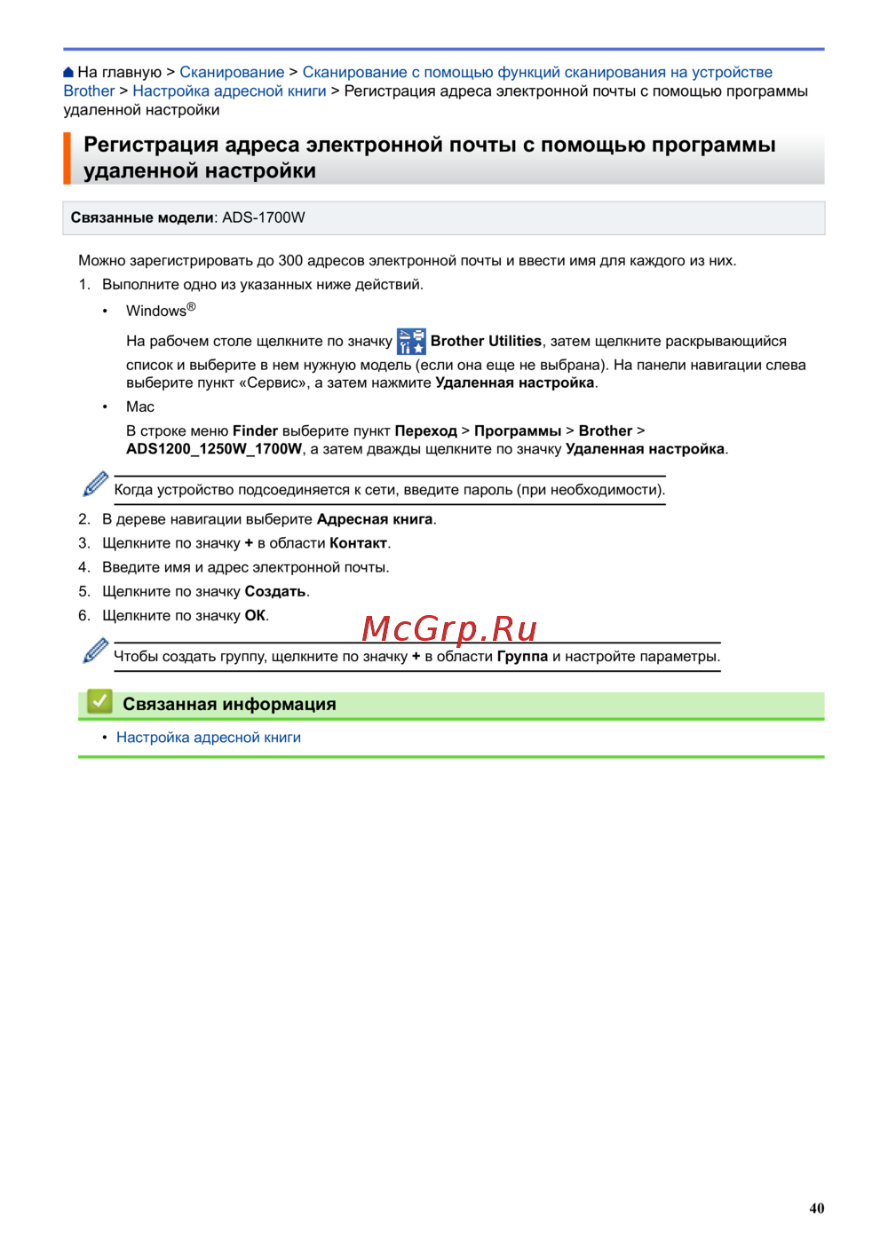 Brother ADS-1200 (ADS1200TC1) — настройка адресной книги для сканирования на устройстве [44/223]