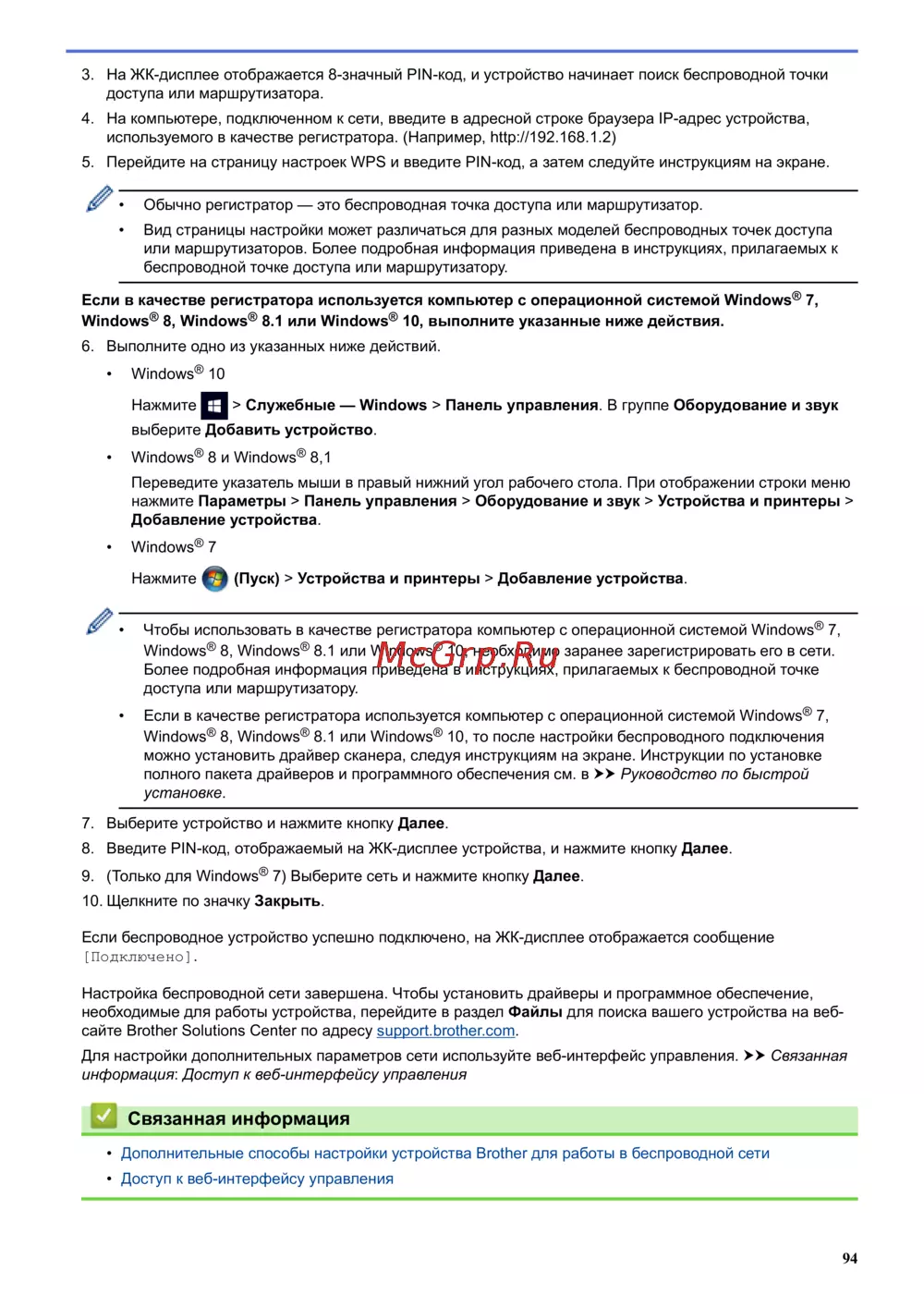 • Дополнительные способы настройки устройства Brother для работы в беспроводной сети