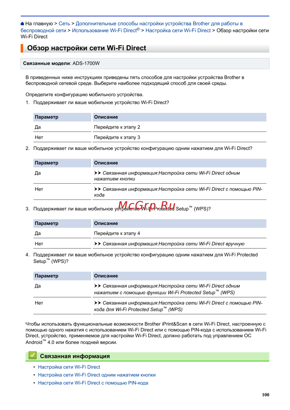 Brother ADS-1700W (ADS1700WTC1) — настройка Wi-Fi Direct для устройств в беспроводной сети [104/223]