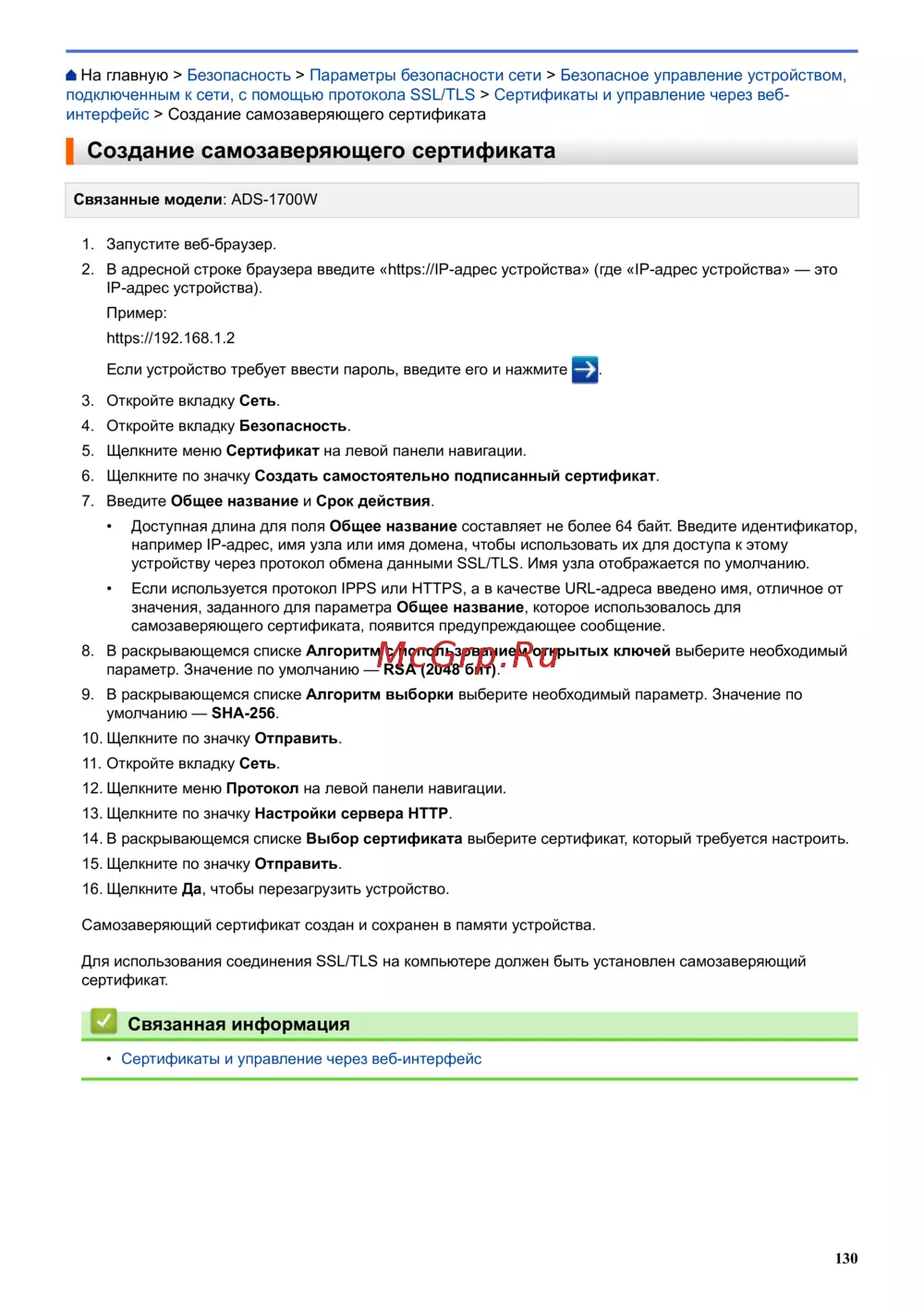 Brother ADS-1700W (ADS1700WTC1) — создание самозаверяющего сертификата для безопасного управления устройством [134/223]