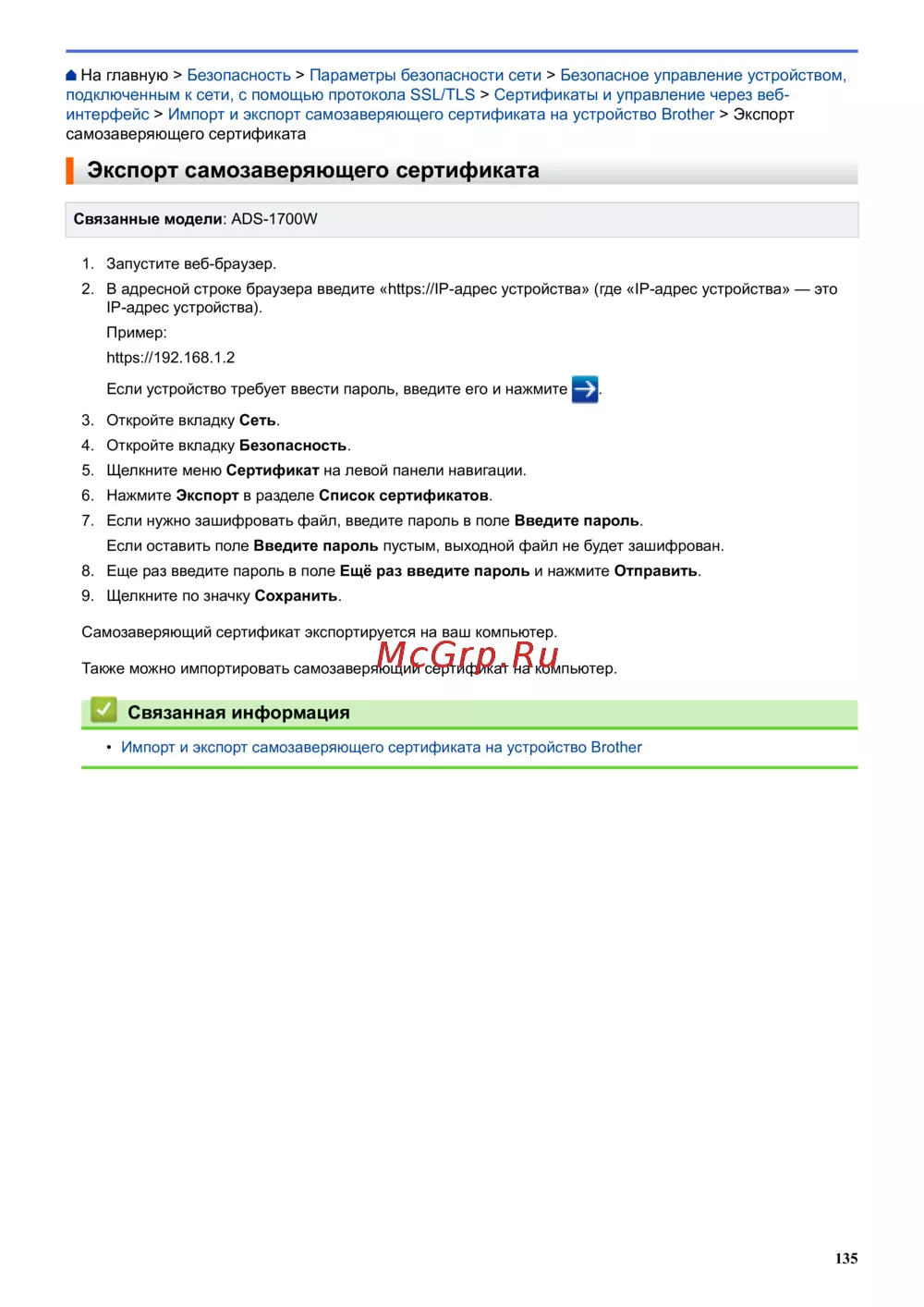 Brother ADS-1700W (ADS1700WTC1) — экспорт и импорт самозаверяющего сертификата для сетевых устройств [139/223]