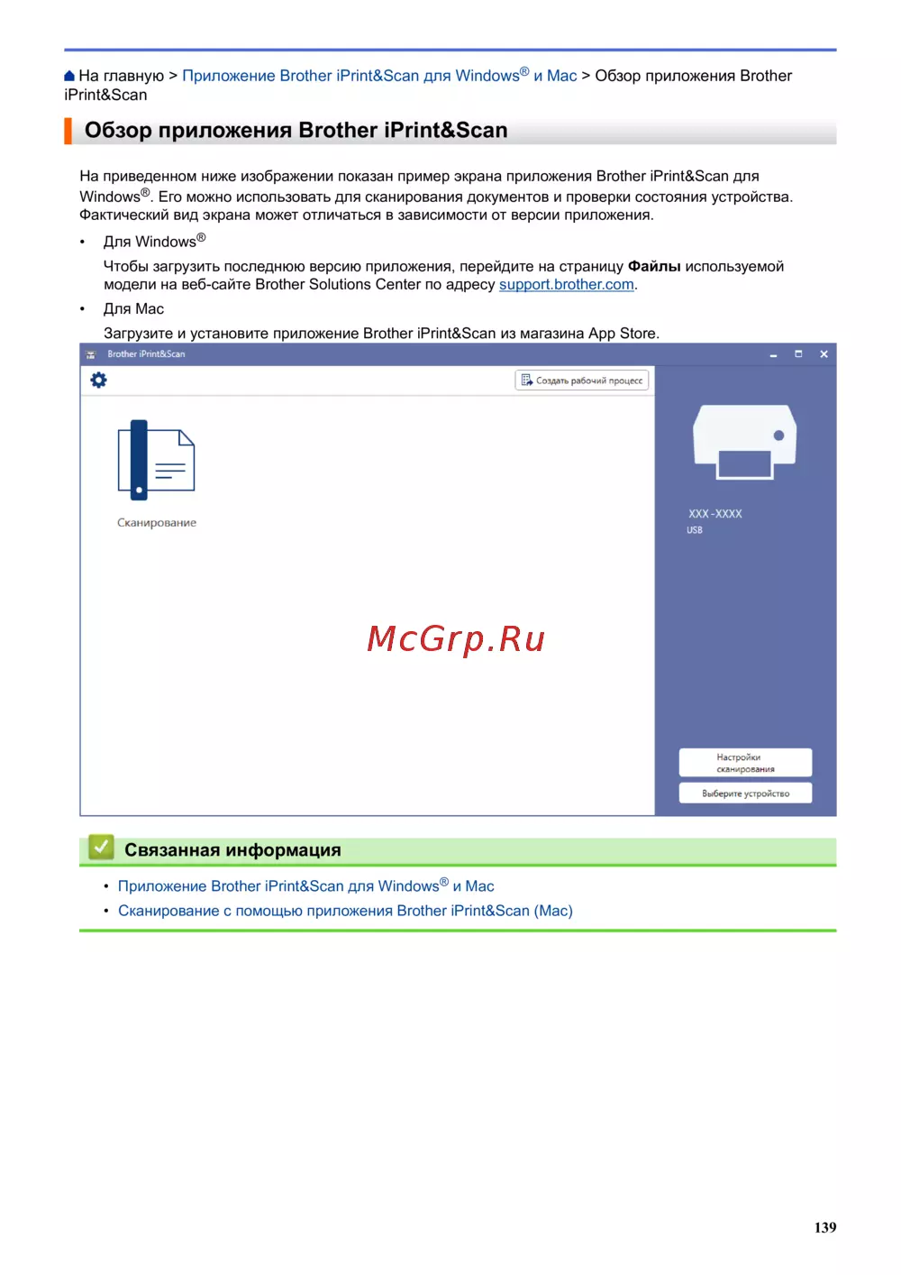 • Сканирование с помощью приложения Brother iPrint&Scan (Mac)