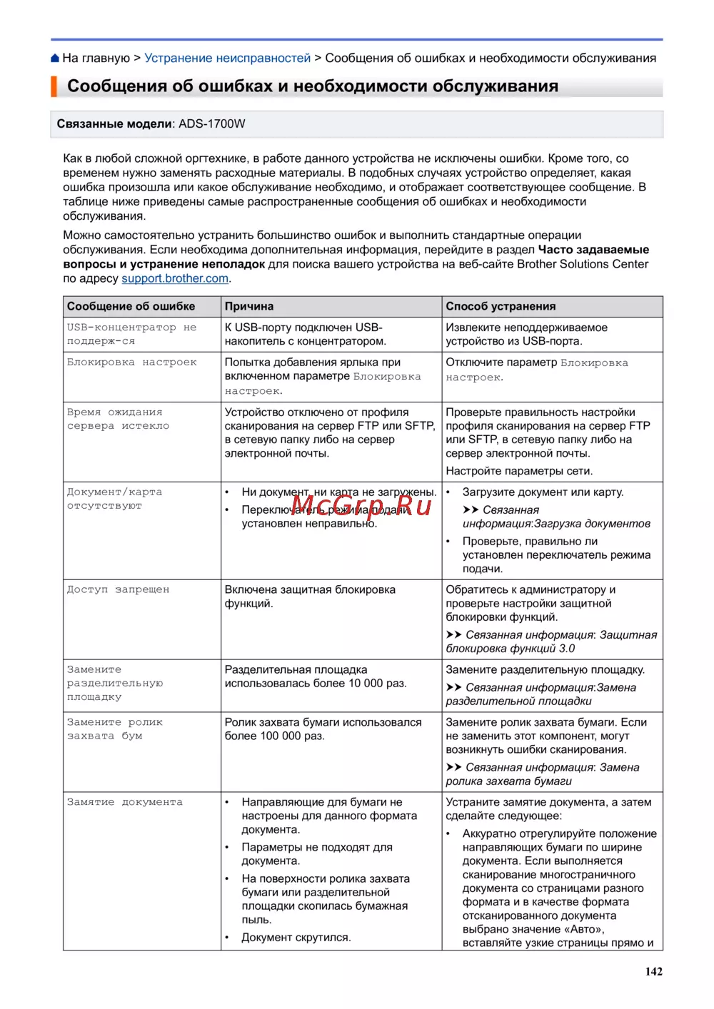 Brother ADS-1700W (ADS1700WTC1) — устранение неисправностей: Сообщения об ошибках и обслуживание [146/223]