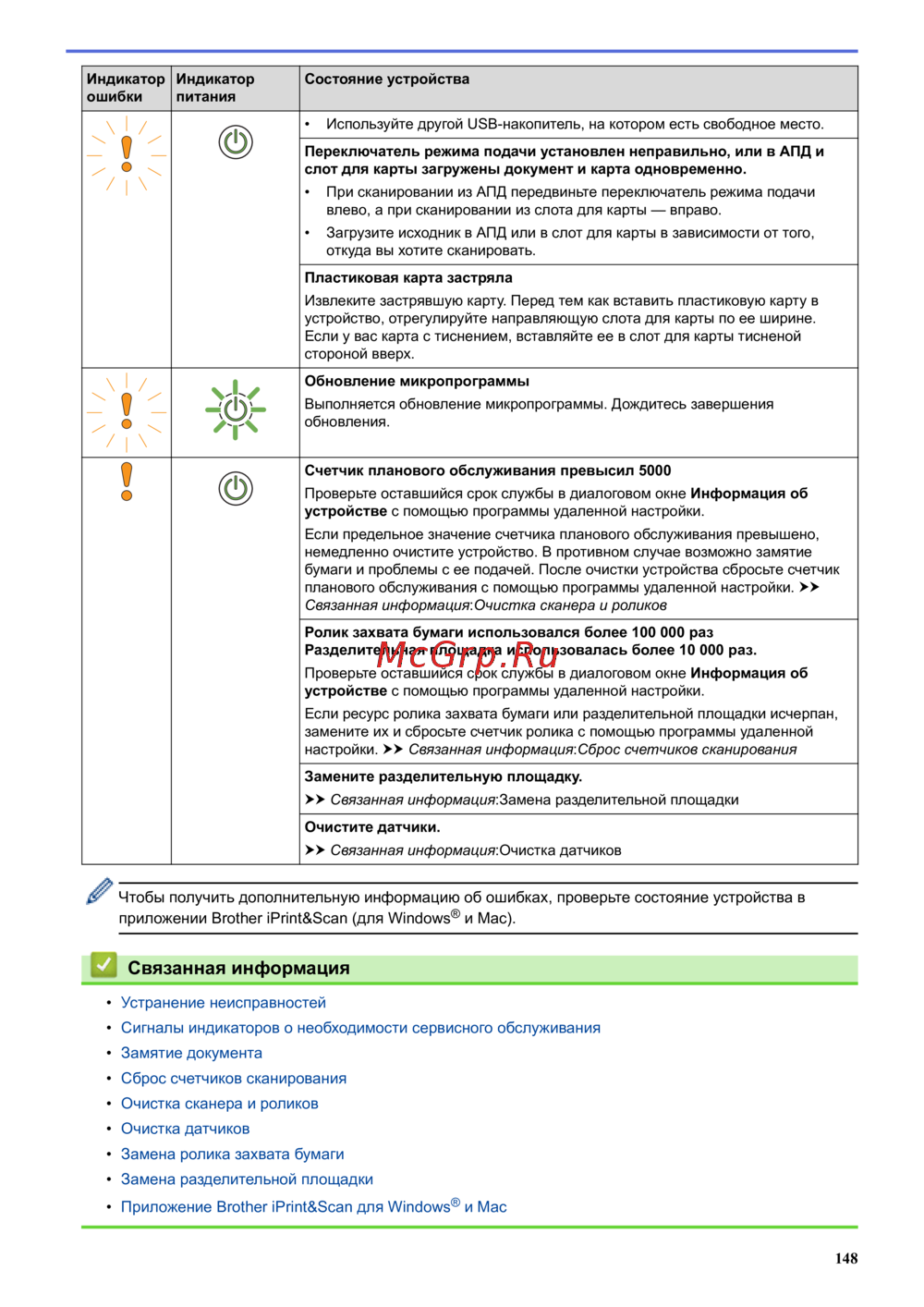 ![Brother ADS-1700W (ADS1700WTC1) [152/223] Чтобы получить дополнительную информацию об ошибках проверьте состояние устройства в приложении brother iprint scan для window](/views2/1733138/page152/bg98.png)