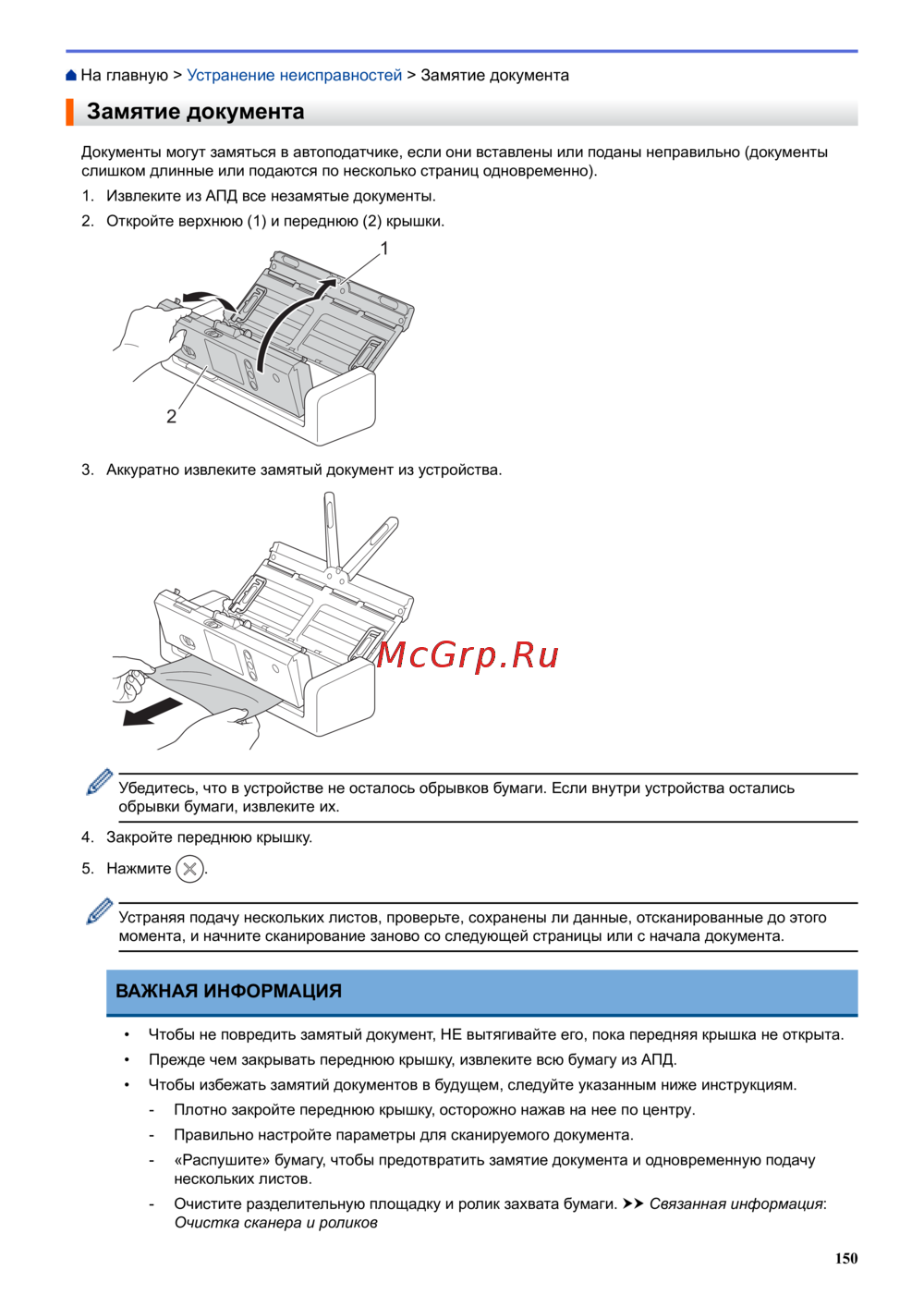 • Чтобы избежать замятий документов в будущем, следуйте указанным ниже инструкциям.