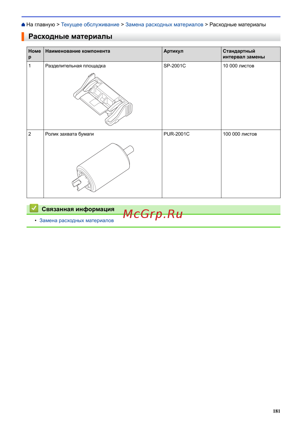 На главную > Текущее обслуживание > Замена расходных материалов > Расходные материалы