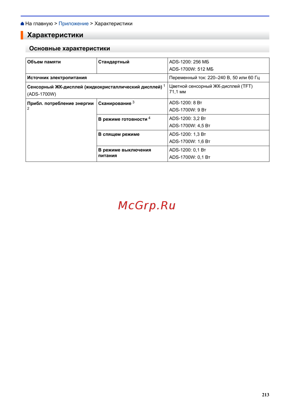 Brother ADS-1700W (ADS1700WTC1) [217/223] Характеристики