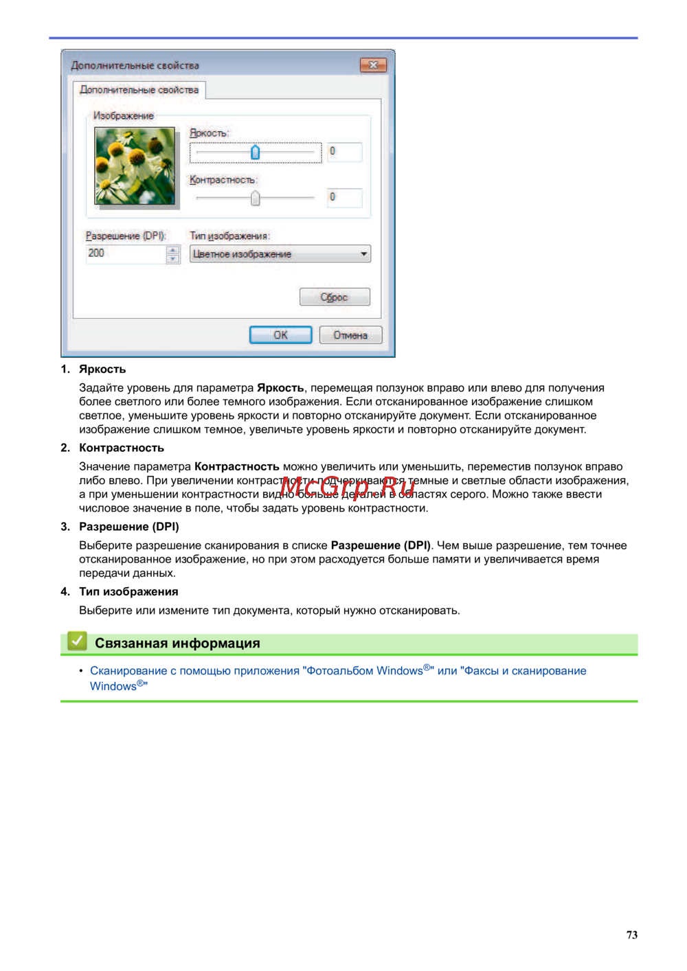 Brother ADS-1700W (ADS1700WTC1) — настройки сканирования: яркость, контрастность и разрешение [77/223]