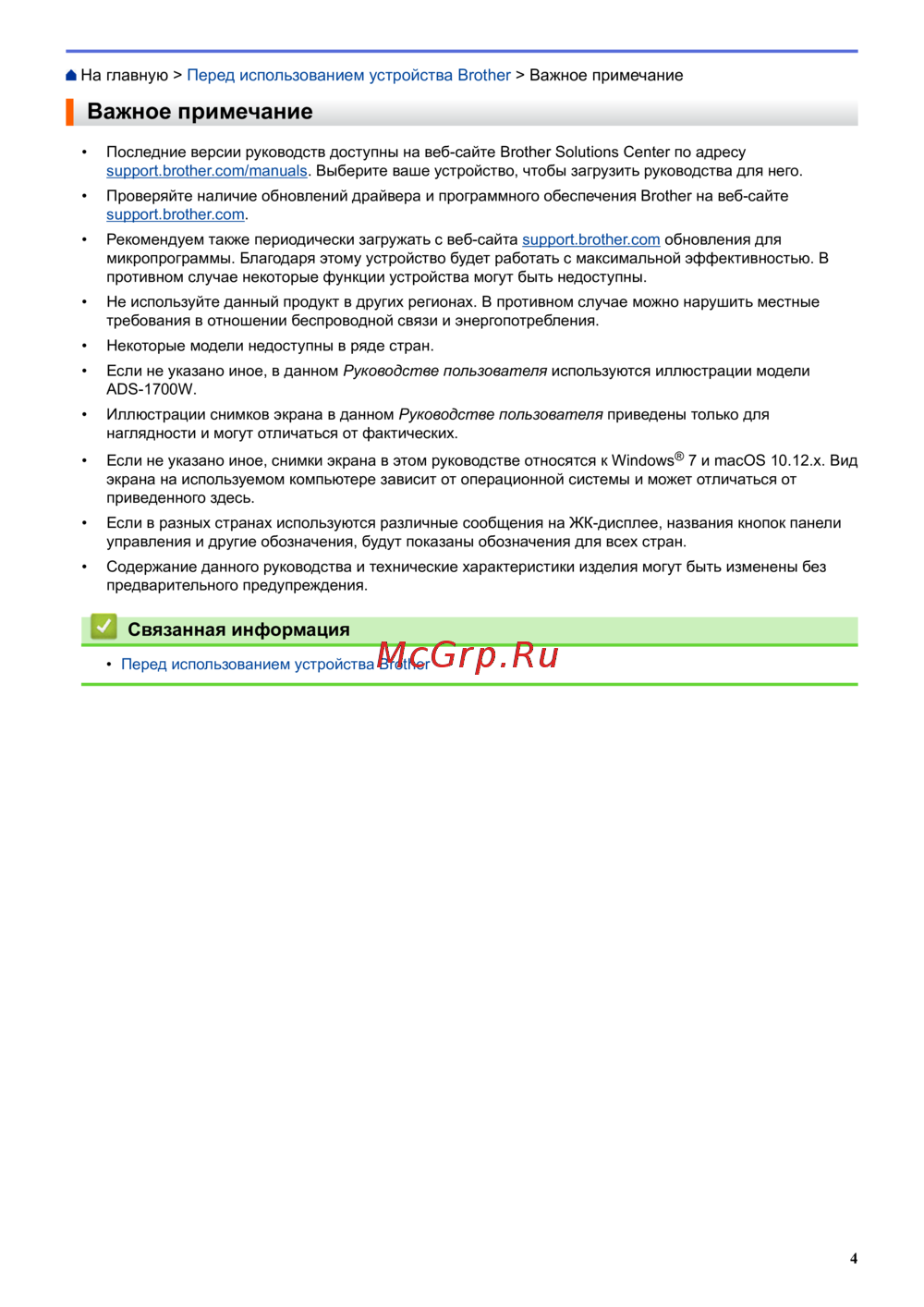 ![Brother ADS-1700W (ADS1700WTC1) [8/223] Важное примечание](/views2/1733138/page8/bg8.png)