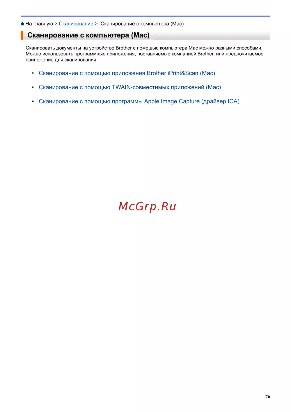 • Сканирование с помощью приложения Brother iPrint&Scan (Mac)