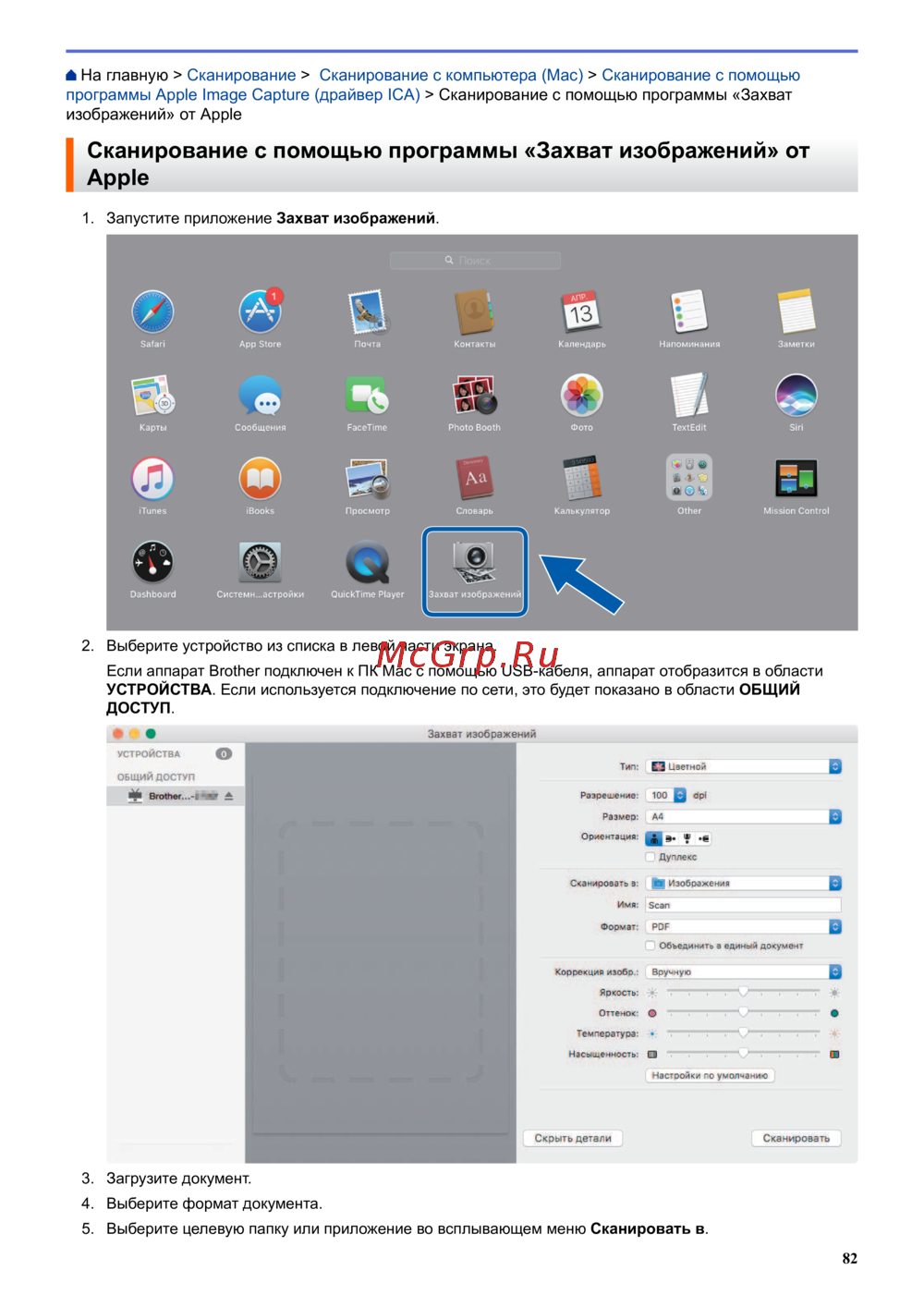 Brother ADS-1700W (ADS1700WTC1) — как сканировать документы на Mac с помощью Захвата изображений [86/223]