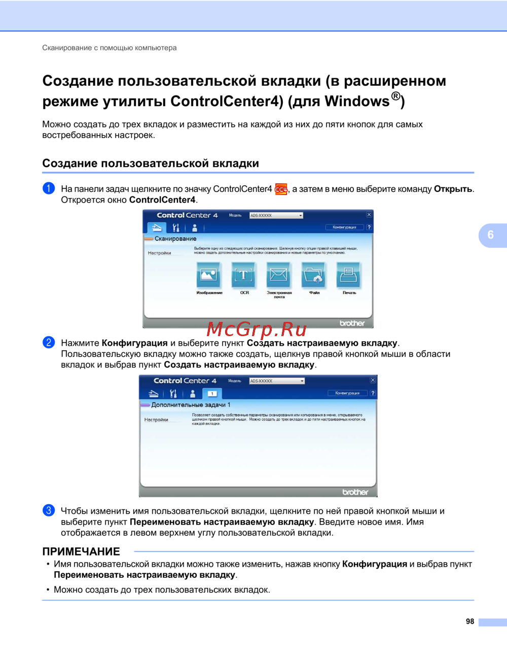 ![Brother ADS-2400N (ADS2400NUN1) [114/303] Создание пользовательской вкладки в расширенном режиме утилиты controlcenter4 для windows](/views2/1733139/page114/bg72.png)
