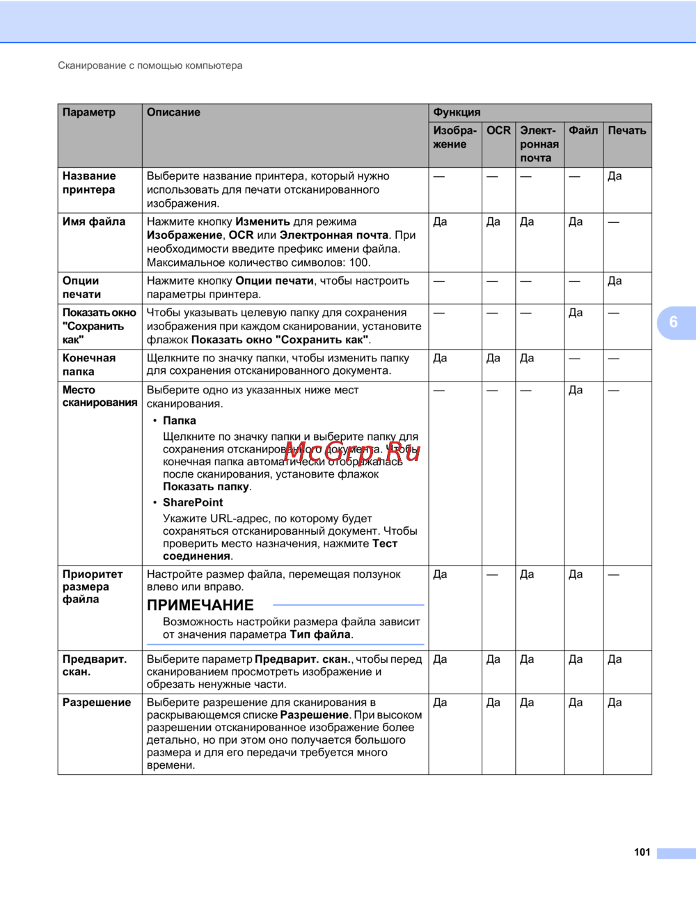 - При использовании для сканирования панели управления устройства brother и компьютера p.297