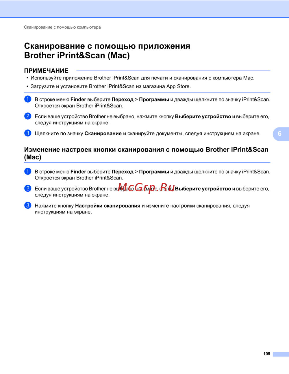 • Используйте приложение Brother iPrint&Scan для печати и сканирования с компьютера Mac.