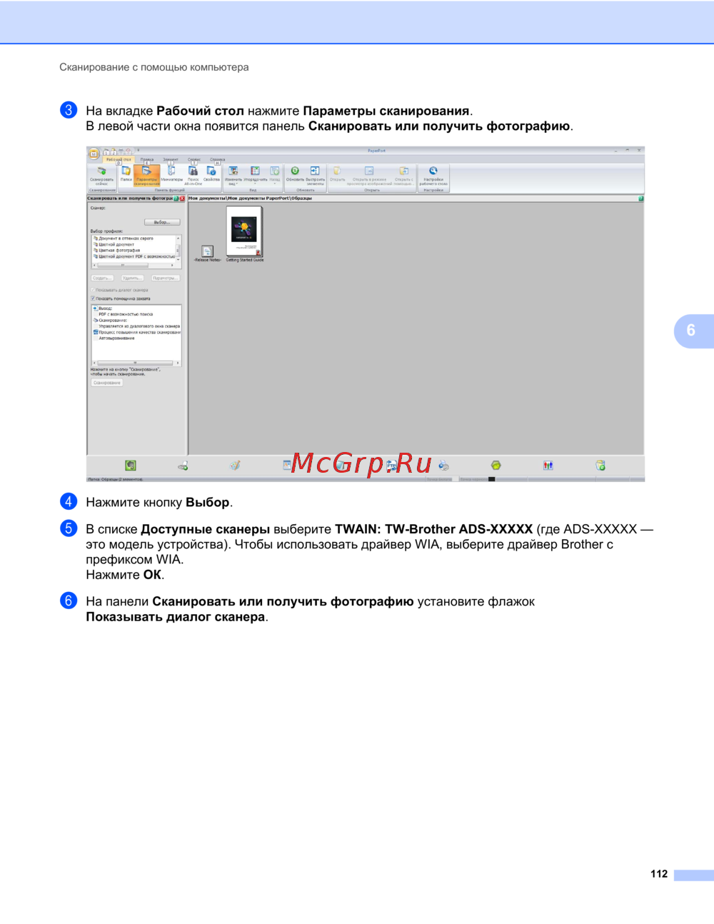 это модель устройства). Чтобы использовать драйвер WIA, выберите драйвер Brother с