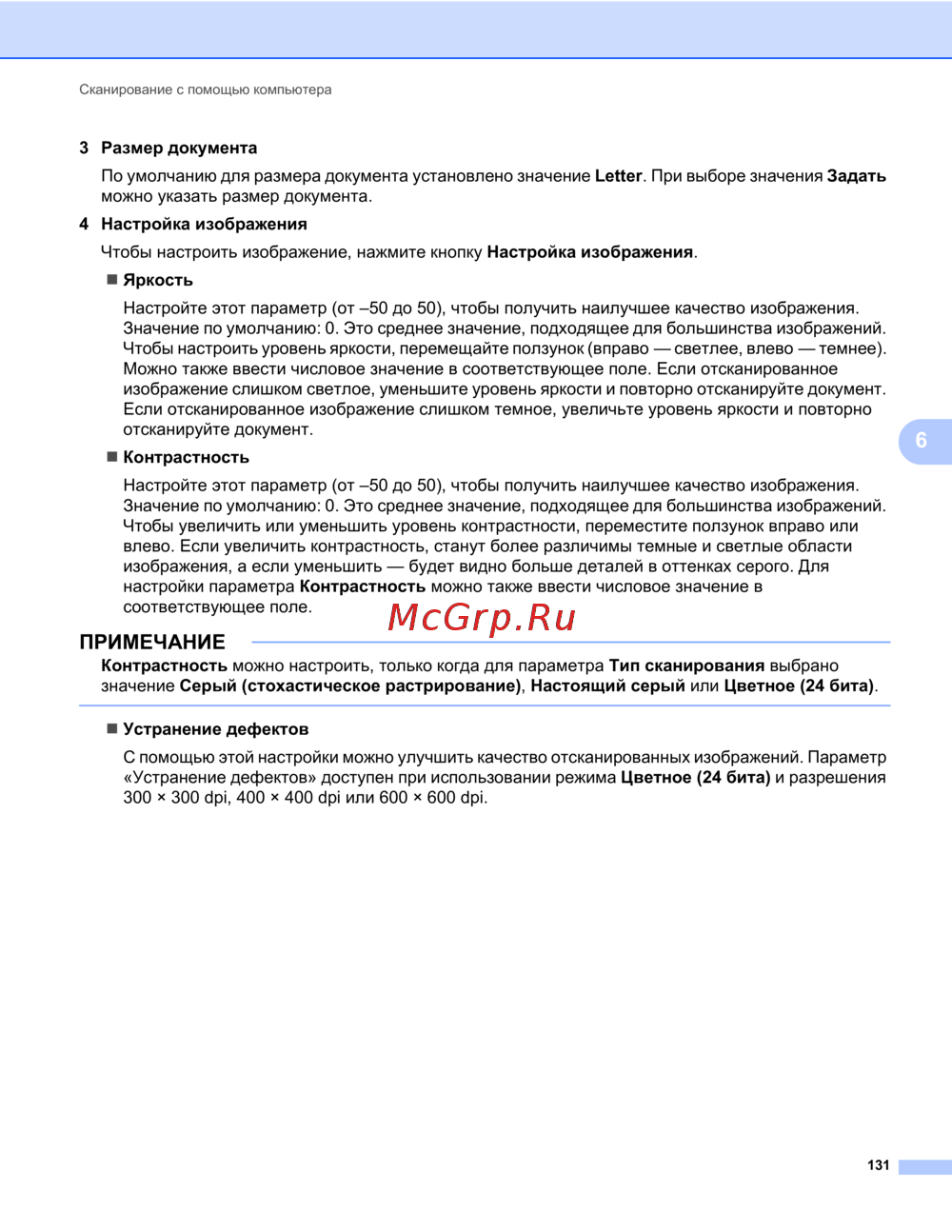 Brother ADS-2400N (ADS2400NUN1) — настройка сканирования: яркость, контрастность и устранение дефектов [147/303]