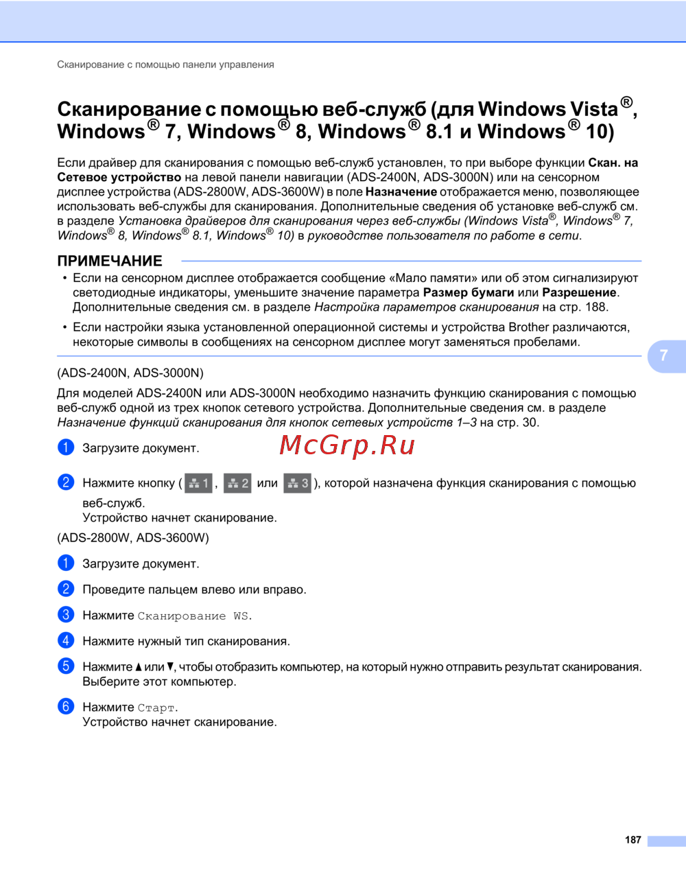 Brother ADS-2400N (ADS2400NUN1) — сканирование с помощью веб-служб: пошаговая инструкция [203/303]