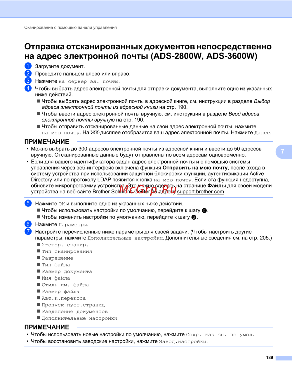 на адрес электронной почты (ADS-2800W, ADS-3600W) 7