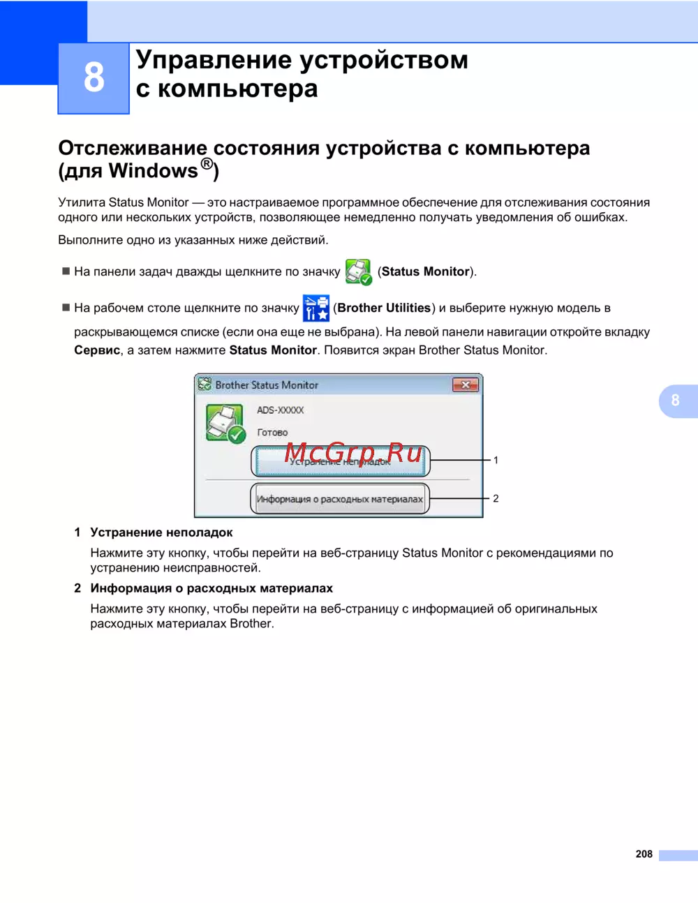 Brother ADS-2400N (ADS2400NUN1) — утилита для отслеживания состояния устройств на компьютере [224/303]
