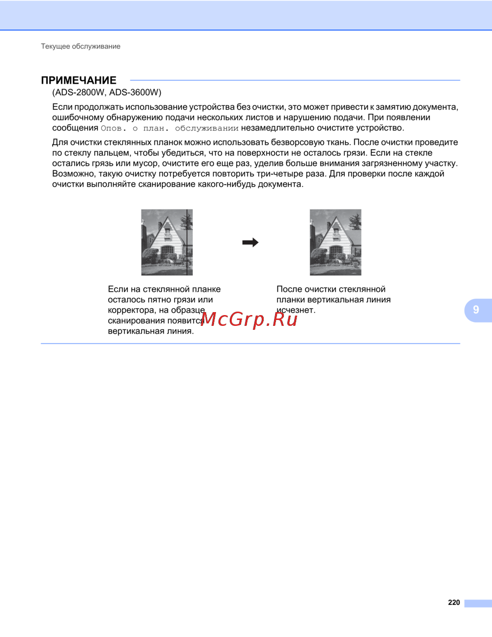 Brother ADS-2400N (ADS2400NUN1) — рекомендации по обслуживанию и очистке сканеров [236/303]