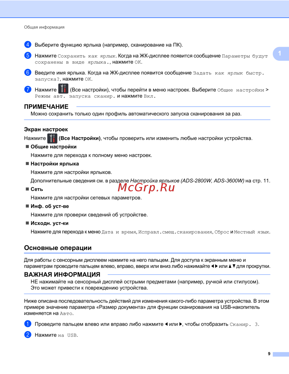 Дополнительные сведения см. в разделе Настройка ярлыков (ADS-2800W, ADS-3600W) на стр.11.