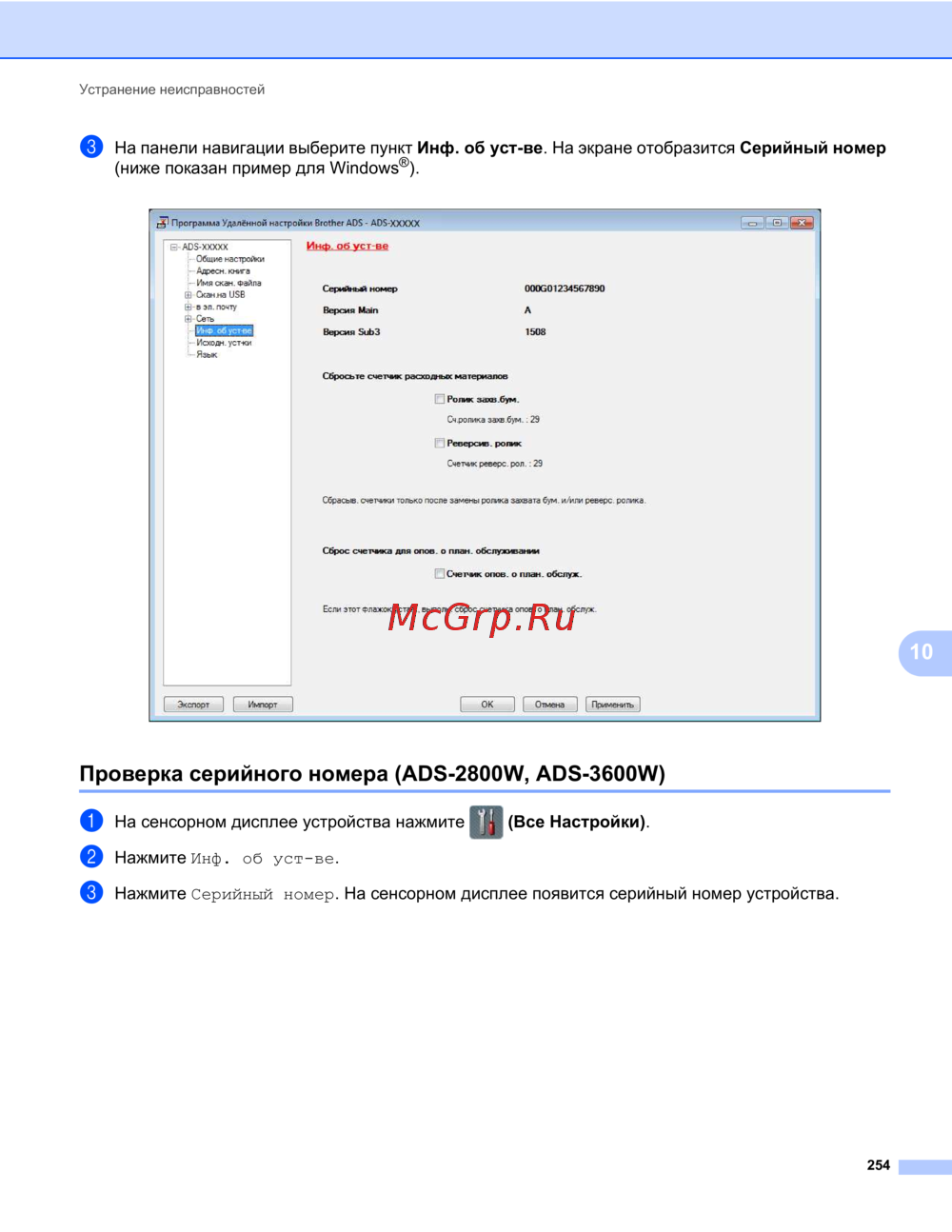 Проверка серийного номера (ADS-2800W, ADS-3600W) 10