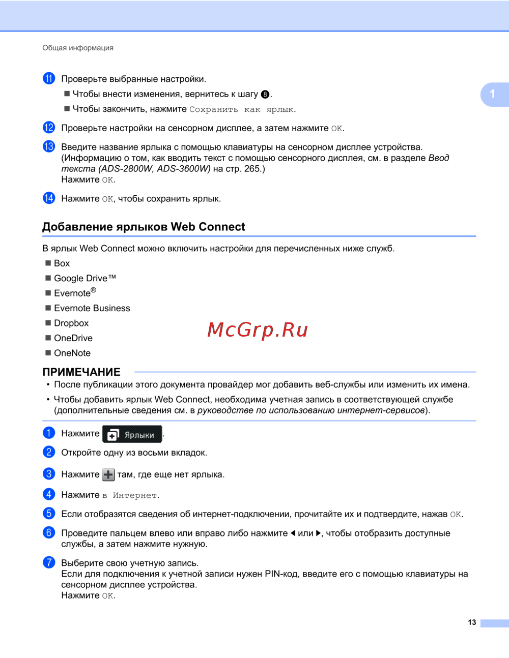 Brother ADS-2400N (ADS2400NUN1) — как создать ярлык Web Connect на сенсорном дисплее устройства [29/303]