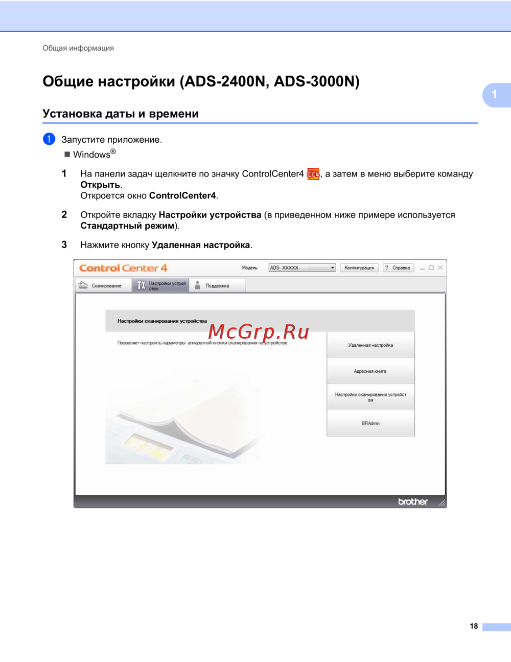 Общие настройки (ADS-2400N, ADS-3000N) 1