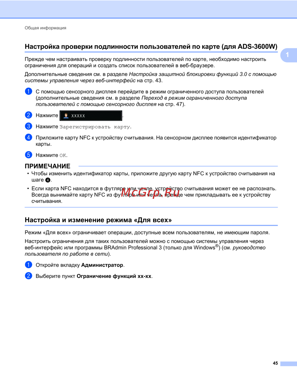 Brother ADS-2400N (ADS2400NUN1) — настройка проверки подлинности пользователей по карте NFC [61/303]