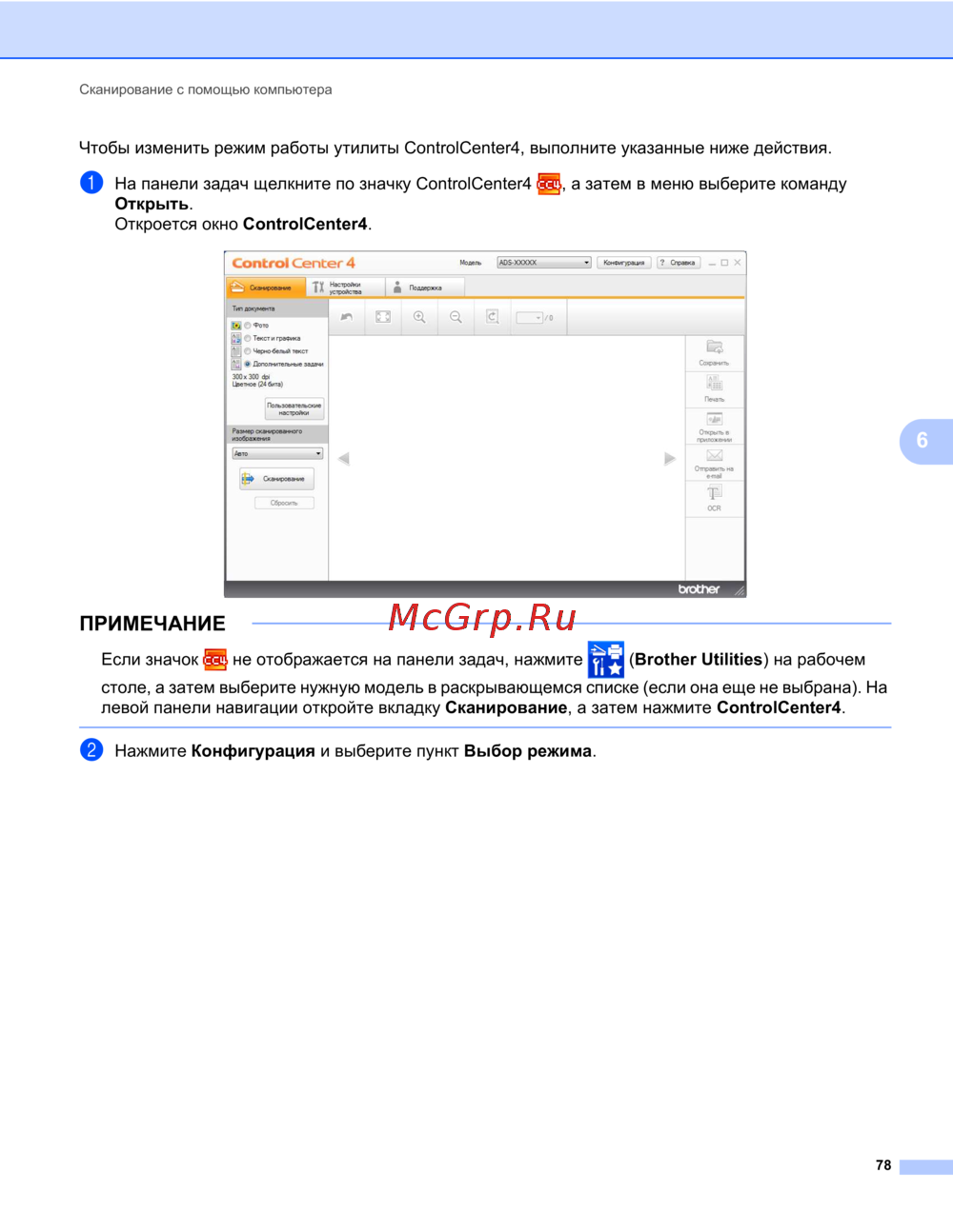 Чтобы изменить режим работы утилиты ControlCenter4, выполните указанные ниже действия.