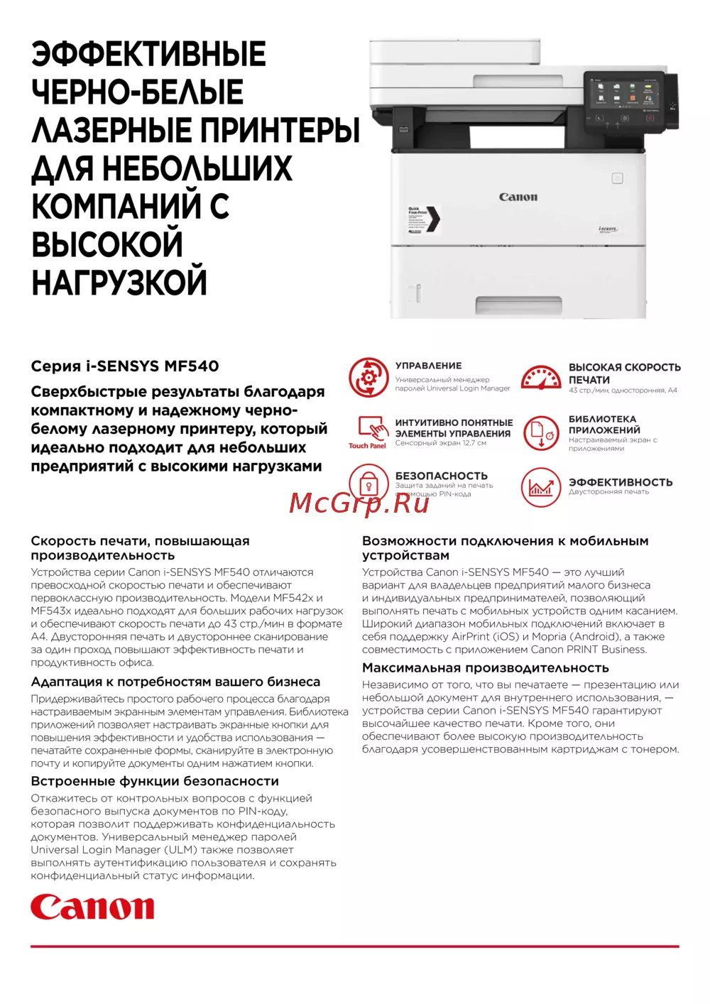 Устройства серии Canon i-SENSYS MF540 отличаются