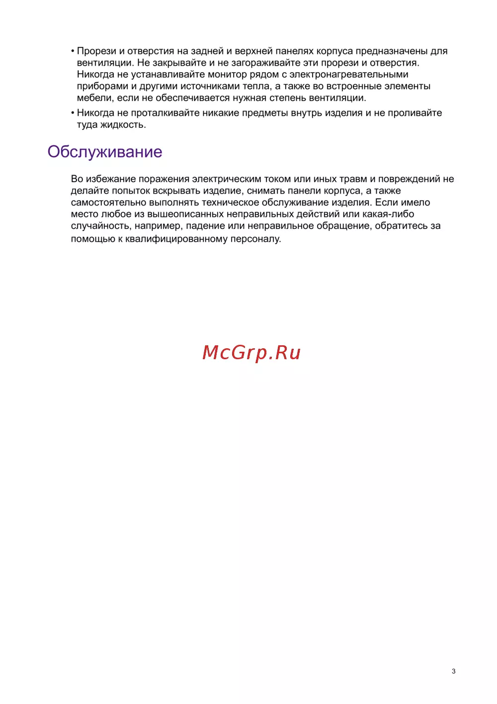 • Прорези и отверстия на задней и верхней панелях корпуса предназначены для