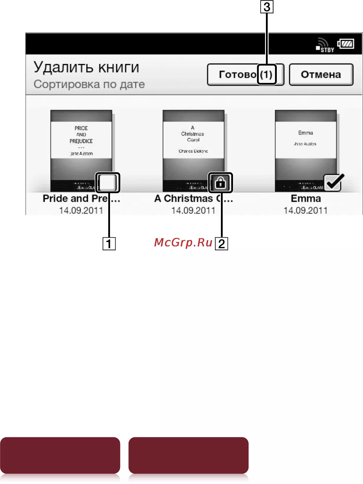 Sony PRS-T1 Red [129/267] Коснитесь кнопки удаление книг