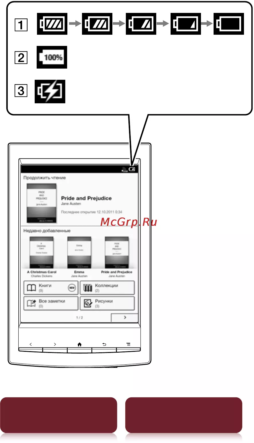 - Зарядка устройства reader p.236