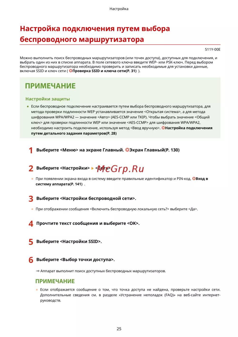 ➠ Аппарат выполнит поиск доступных беспроводных маршр
