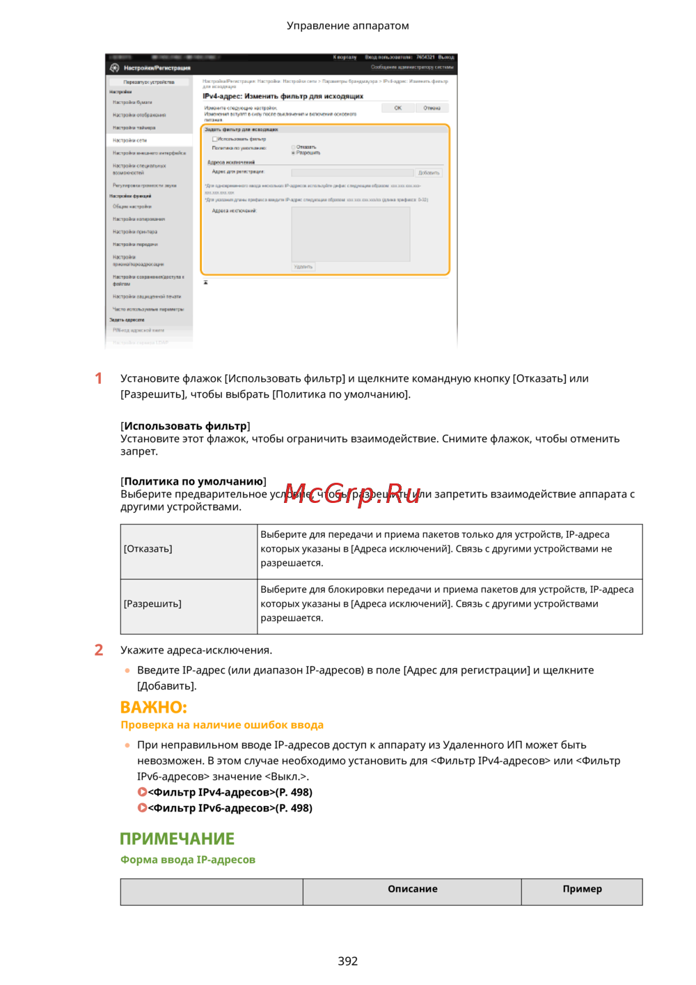 невозможен. В этом случае необходимо установить для <Фильтр IPv4-адресов> или <Фильтр