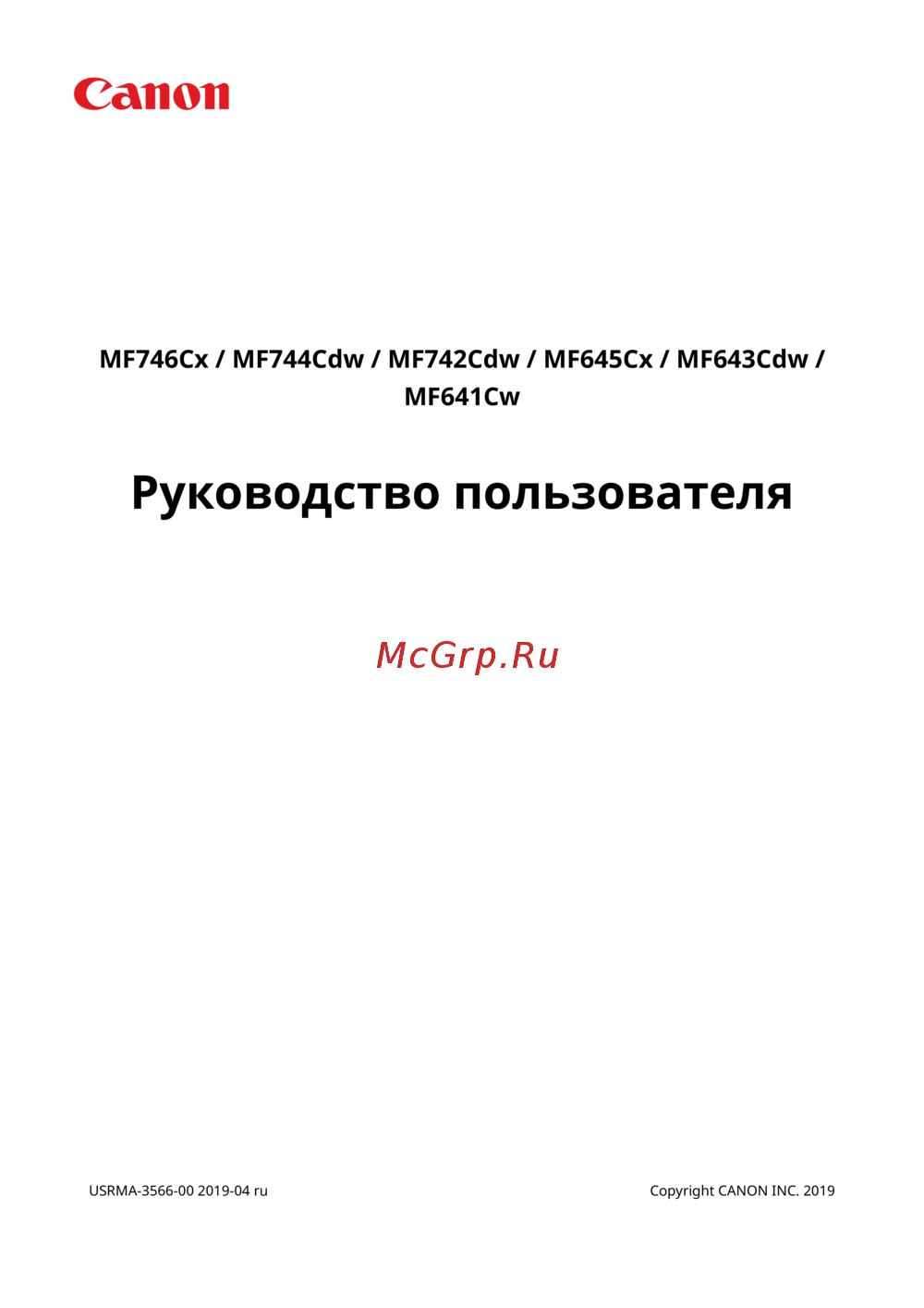 Canon i-SENSYS MF744CdwИнструкция по эксплуатации -