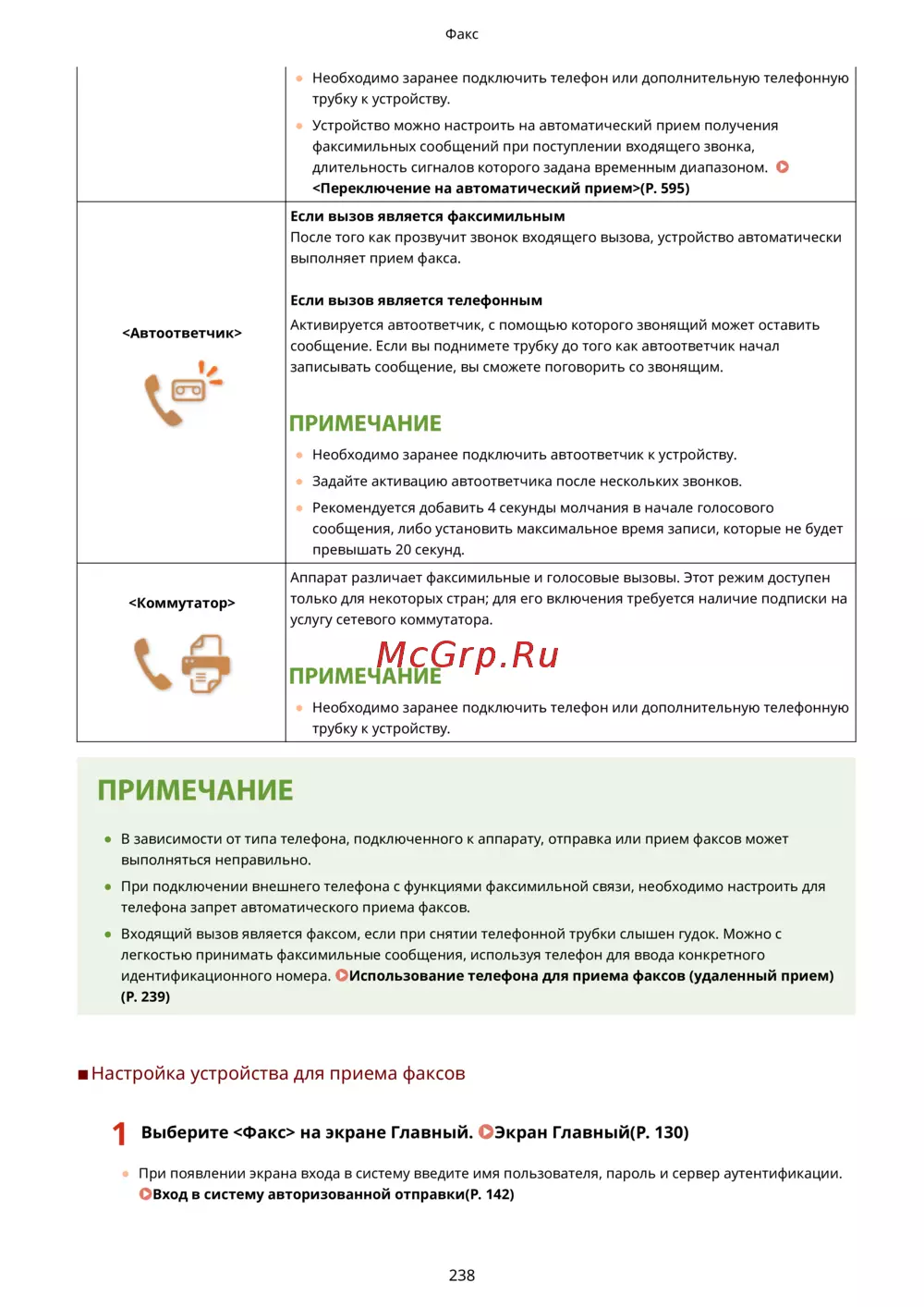 ◼ Настройка устройства для приема фак