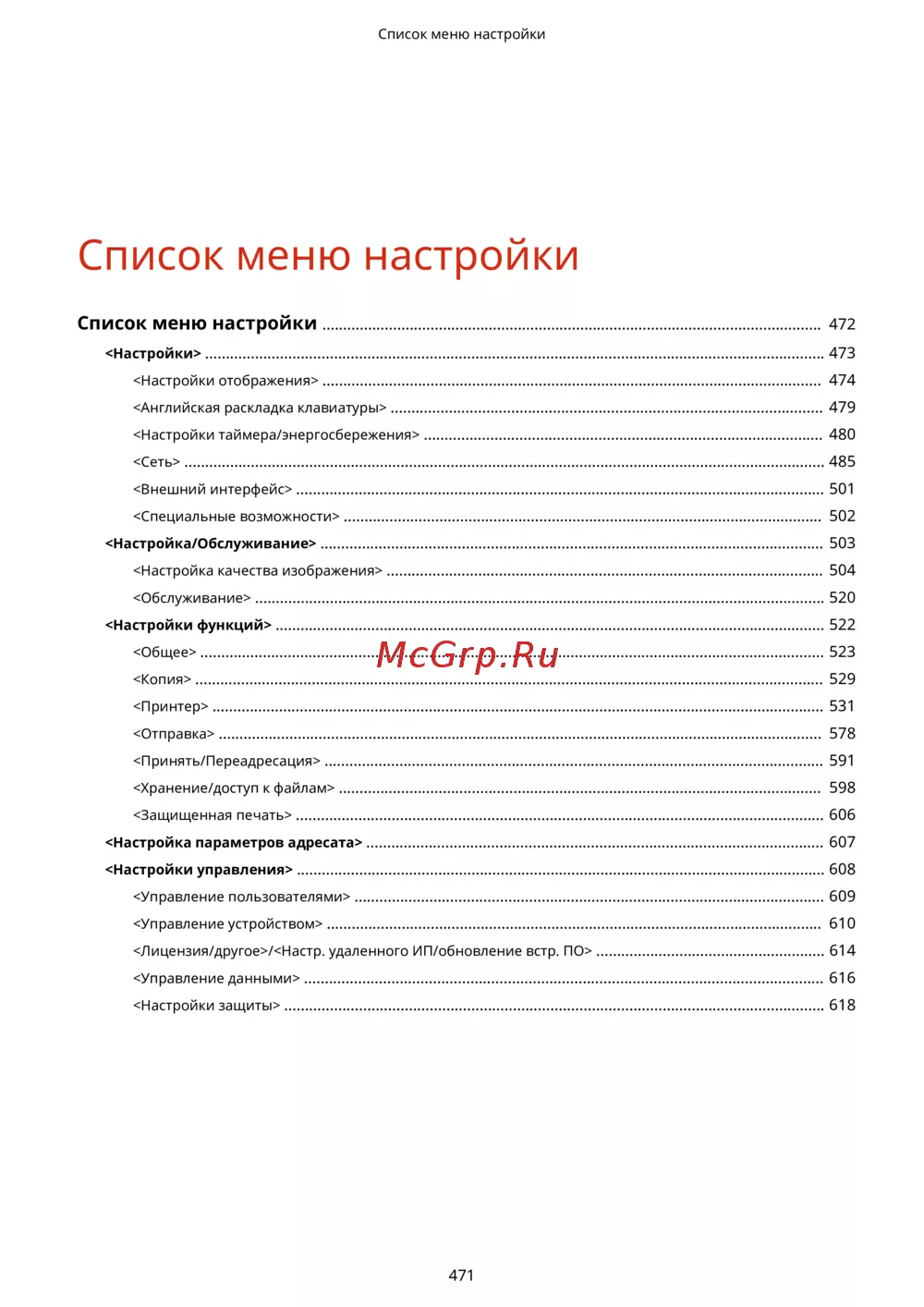 <Настройка/Обслуживание> ......................................................................................................................... 503